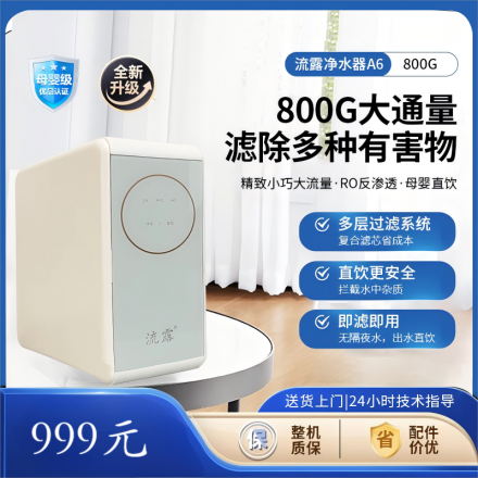 流露A6反滲透凈水器RO大流量800G無壓力桶999元